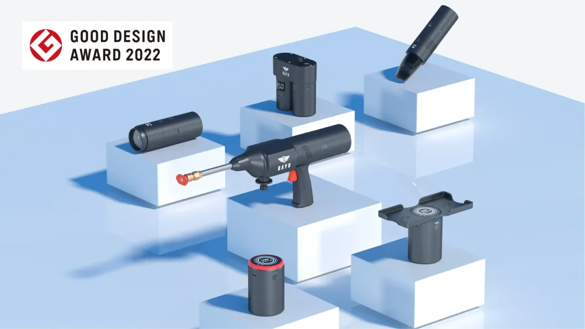 バッテリー1つで5つの高性能車載ガジェットが使える、スマートな車載ガジェットセット「BAYU」が2022年度グッドデザイン賞を受賞