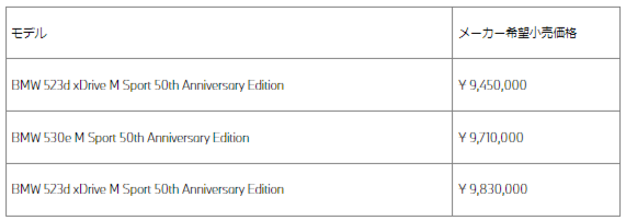 BMW 5シリーズの日本発売50周年を記念した特別仕様車