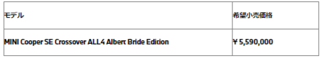 ビー・エム・ダブリュー株式会社は、MINI PHEV をベースにした特別仕様車「MINI Crossover Albert Bridge Edition PHEV(アルバート・ブリッジ・エディション・ピーエイチイーブイ)」を全国のMINI正規ディーラーにて発売する。限定のボディ・カラーやレザー・シートなど、ハイ・グレードな仕様を施した特別仕様車となっている。高いデザイン性に加えて安全装備や運転支援システムも充実しており、前車接近警告機能、衝突被害軽減ブレーキ、レーン・ディパーチャー・ウォーニング機能を標準装備しており、安全性をさらに向上させたモデルとなる。価格は5,590,000円(税込)、納車は12月以降の予定だ。