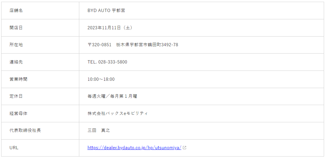■BYD AUTO 正規ディーラーの栃木県第1号店を宇都宮に出店