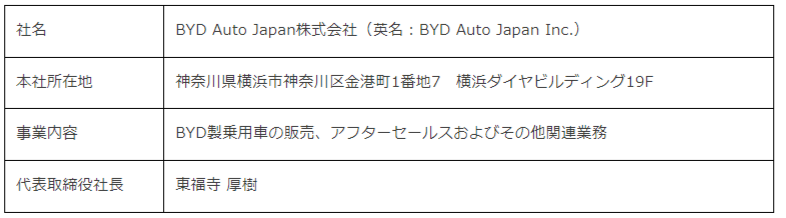 【BYD Auto Japan株式会社について】