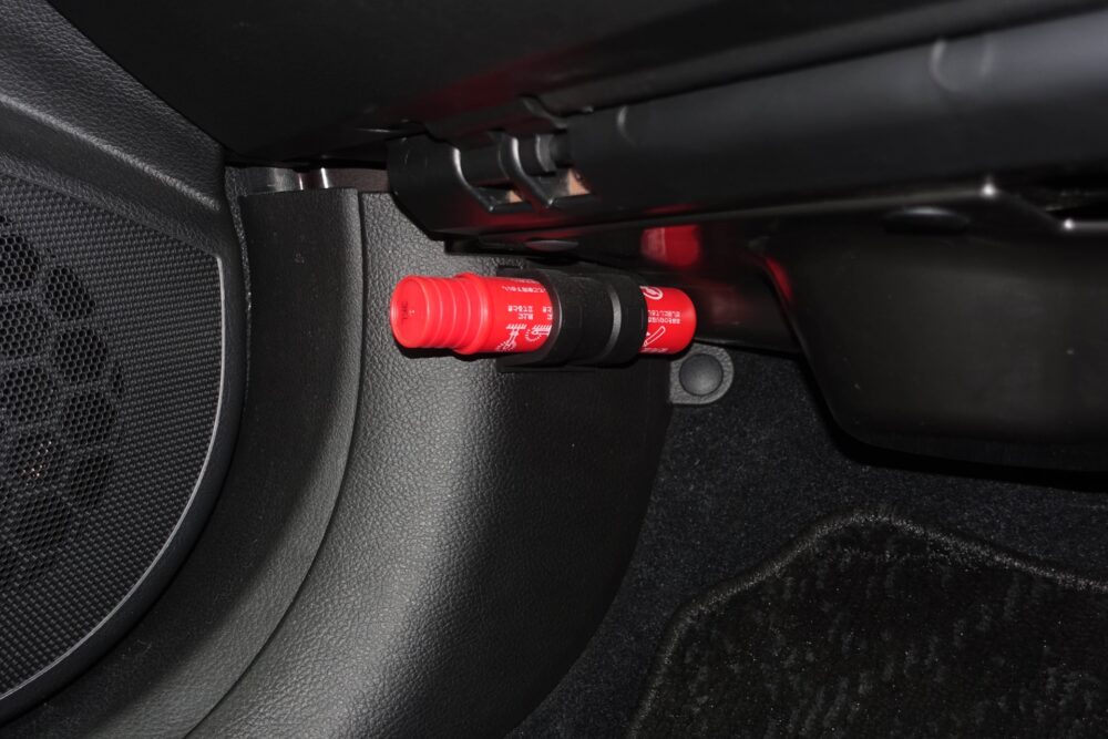 装着場所は多くの場合、助手席の足元付近に専用ブラケットで取り付けられており、緊急時にすぐ取り出せるようになっています。