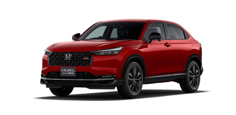 新たに設定された「ヴェゼル e:HEV RS」は、従来のヴェゼルが持つ上質さをベースに、よりスポーティーな印象を際立たせるデザインへと進化しています。