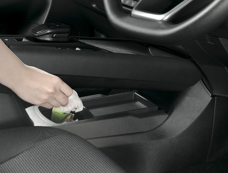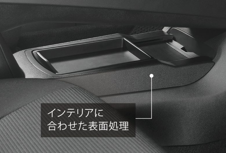車種専用設計のため違和感なくインテリアになじみ、トレイスペースにはスマートフォンといった小物も置きやすい。ゴミ箱容量は約1.8Lで愛車の車内をいつでも清潔に保つことができる。