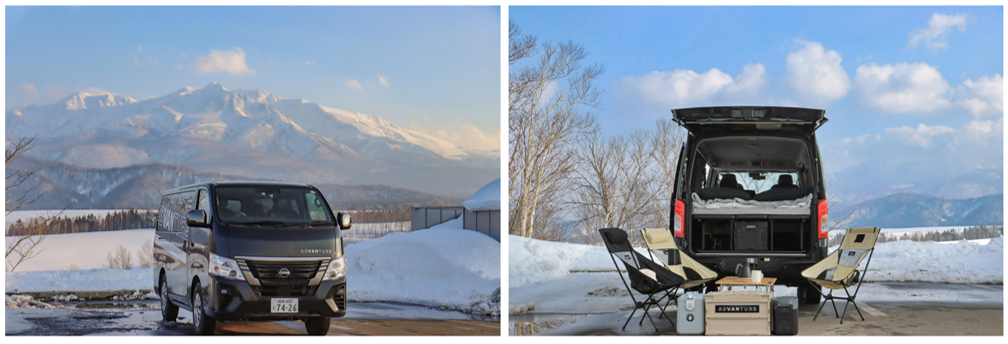 車中泊は、大雪高原旭ヶ丘 車中泊体験特設会場での日産キャラバン(マルチベッド仕様)