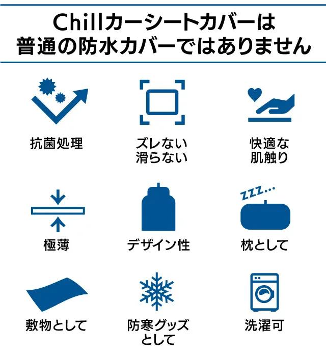 台湾特許の3層構造で首枕や腰枕にも変化し、乗る人にフォーカスしたChill抗菌防水カーシートカバーを9/2(金)より先行販売を開始しました!