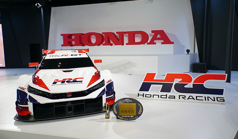 本田技研工業株式会社は、東京オートサロン2023にて開催された「東京国際カスタムカーコンテスト2023」において、「CIVIC TYPE R-GT CONCEPT(シビック タイプアール ジーティー コンセプト)」がコンセプトカー部門最優秀賞を受賞したと発表した。究極のピュアスポーツ性能を追求した「CIVIC TYPE R」をベースに、開発中のレース専用車両のデザインの方向性を示すコンセプトモデルであり、2024年のSUPER GTシリーズGT500クラスへの参戦に向けてHRC(株式会社ホンダ・レーシング)にて開発を進めている車両である。