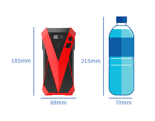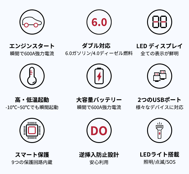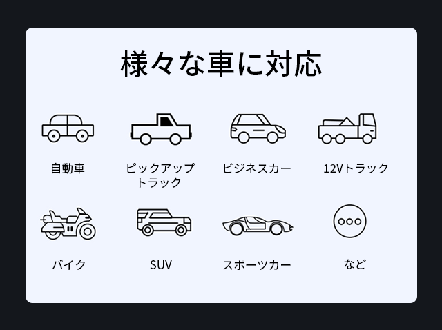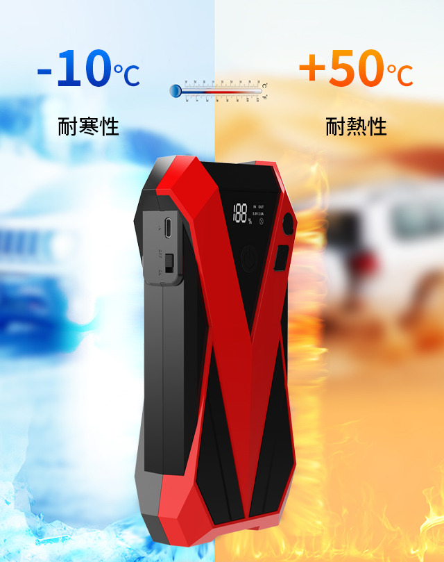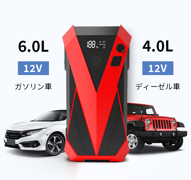 10,000mAh/12,000mAh大容量バッテリーを使用しており、フル充電で約50回始動できます。