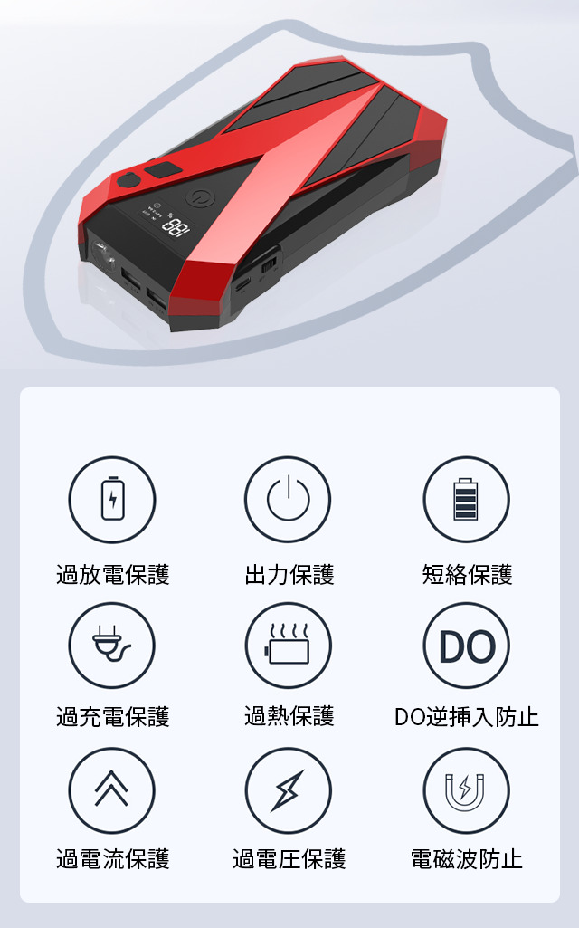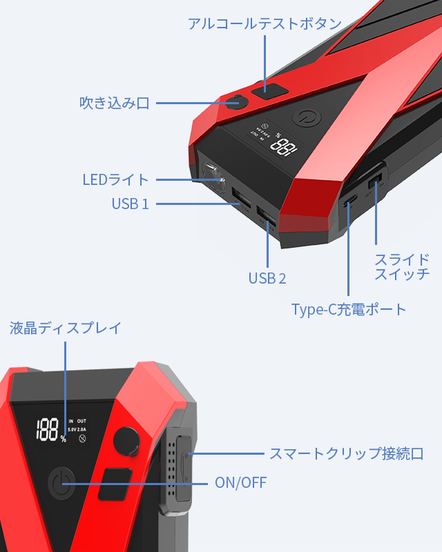 1、新時代ジャンプスターター!アルコール検知機能を搭載したニュータイプ。