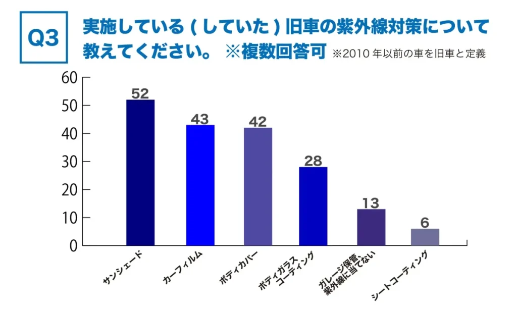 Q3.実施している(していた)旧車の紫外線対策について教えてください。※複数回答可※2010年以前の車を旧車と定義
