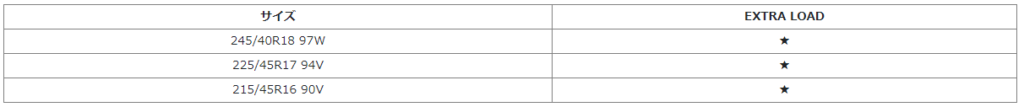 ★=EXTRA LOAD規格(負荷能力強化タイプ)です。