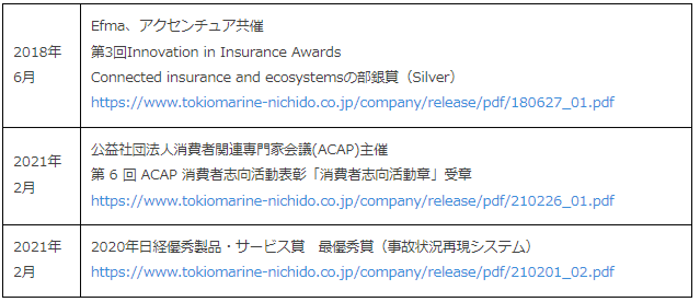 これまでのドライブレコーダー付き自動車保険の販売を通じて、外部からも評価をいただき、数々の賞を受賞しています。