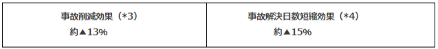 同サービスが備えるリアルタイムでドライバーに注意喚起をする事故防止支援機能等により、特約に加入いただいていないお客様に比べて事故が発生する確率が低くなっていることや、急ブレーキ等の危険運転の頻度が減少するなど、事故発生時の安心だけでなく、事故そのものを未然に防止する効果が大きいことも確認できています。