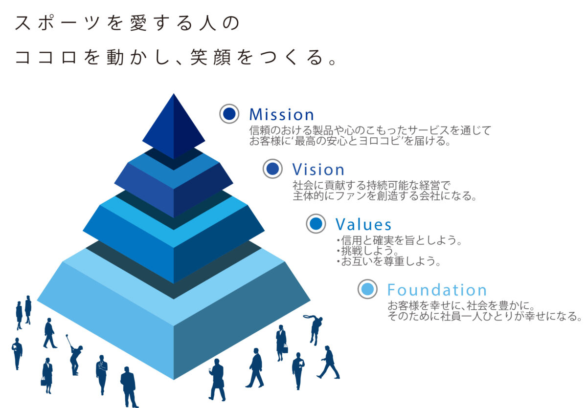 (株)ダンロップスポーツマーケティングは、50周年を迎えるにあたり、企業理念を制定しました。住友ゴム工業(株)の企業理念(https://www.srigroup.co.jp/corporate/principles.html)をベースに、独自に作成したものです。