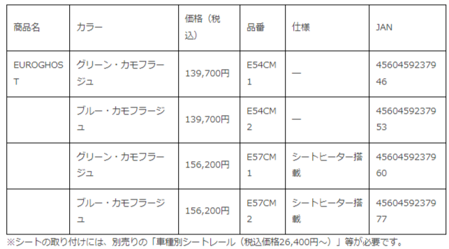ブリッド株式会社は、リクライニングモデル「EUROSTERⅡ」のボディにカモフラージュ柄を組み合わせた、プレイフルでエレガンスなリクライニングシート「EUROGHOST」の受注を開始した。身体全体を包み込みホールドすることで、ロングドライブでも快適性を実現。2種のカモフラージュ色をラインナップし、素材には水滴が浸み込みにくいPVCを使用している。全国のBRIDE取扱店にて注文が可能だ。
