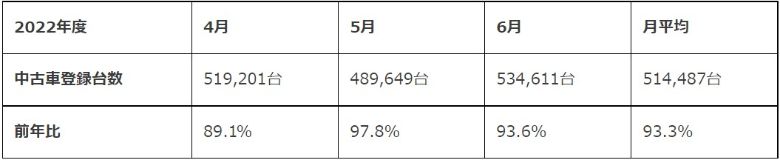 【中古車市場統計レポート(2022年6月)】より抜粋して案内する。