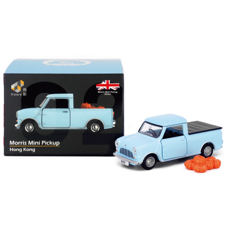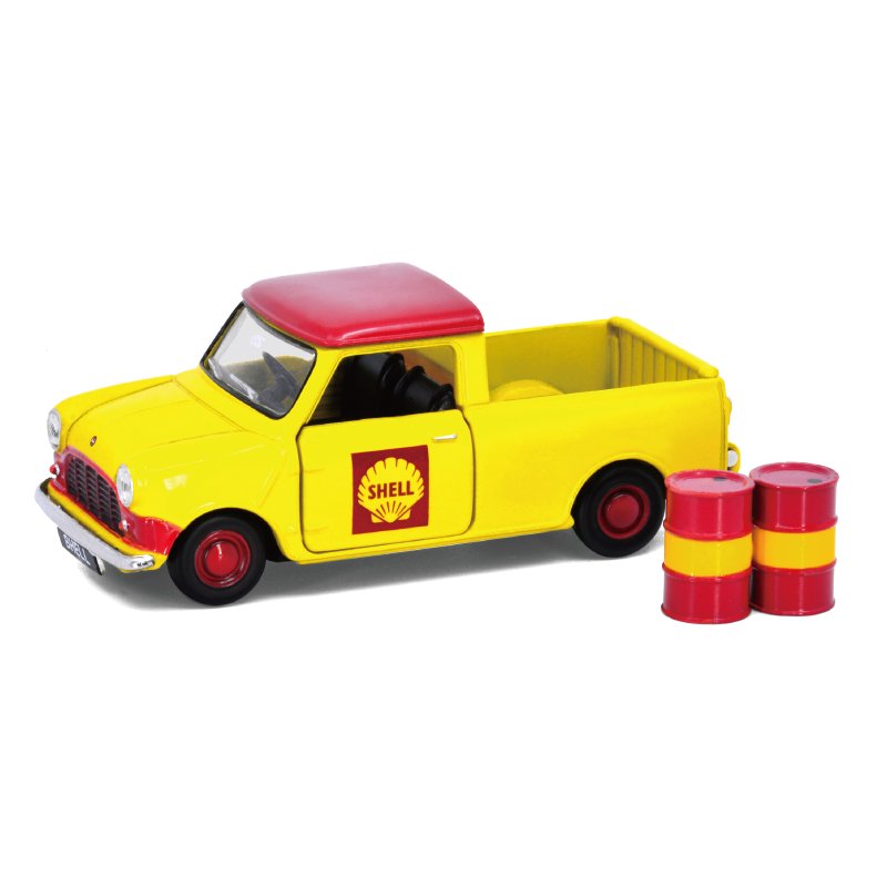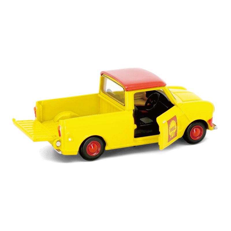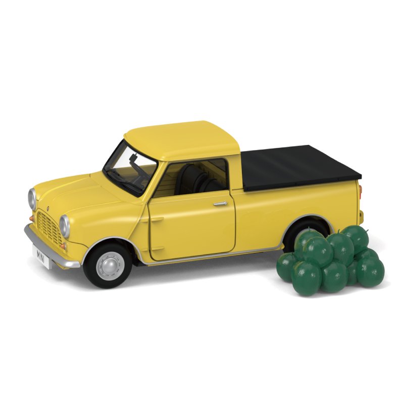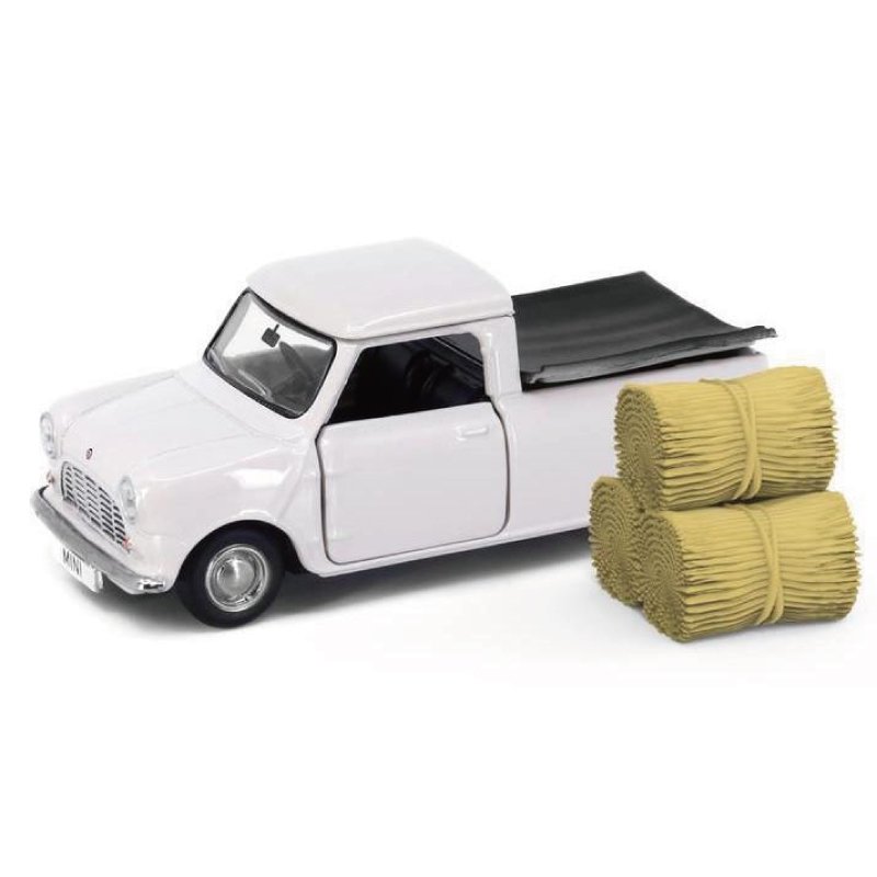 クラシックなミニの中でもひときわ目を引く小さなピックアップトラックは、荷台に載せられる小さな荷物のフィギュアつき。