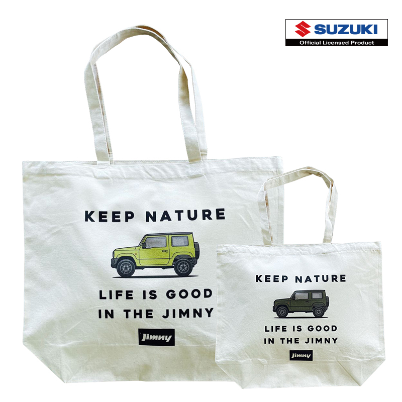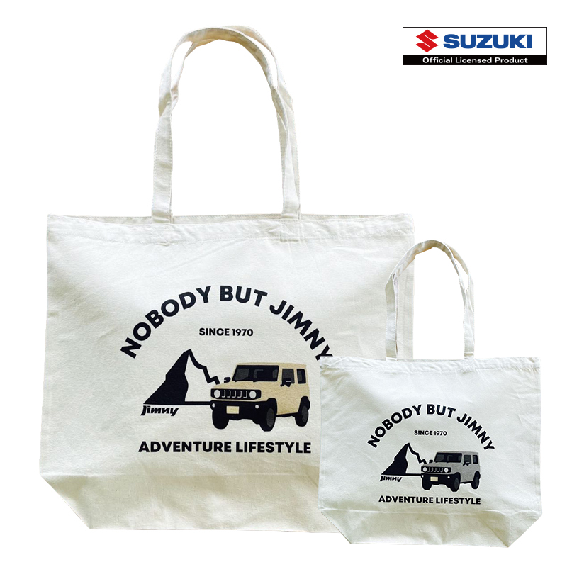 取り扱いアイテムは、ジムニーシエラ型 ウェットティッシュケースやジムニーデザインのトートバッグやTシャツで、ジムニーに乗っている方はもちろんのことジムニーファン以外でも楽しめるオシャレなデザインに仕上がっております。