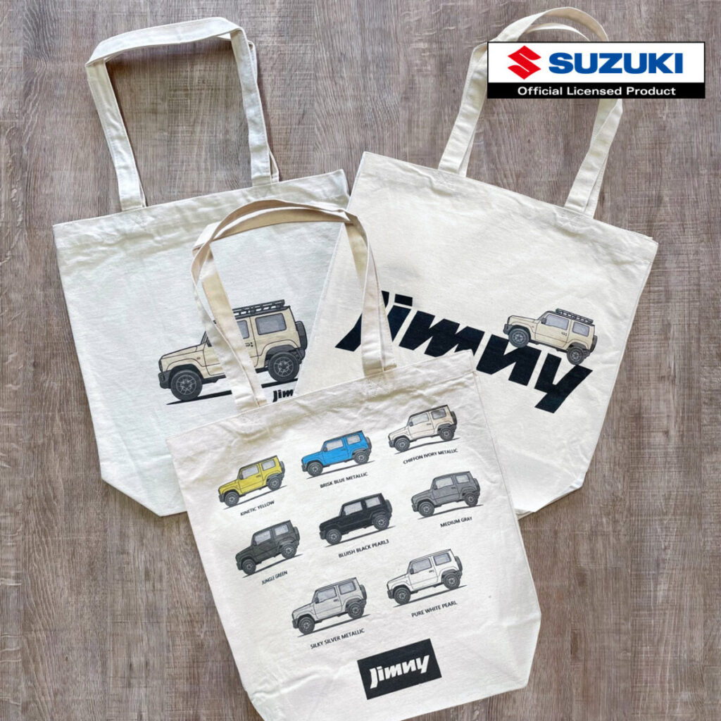 取り扱いアイテムは、「ジムニーシエラ型ウェットティッシュケース」やジムニーデザインのトートバッグやTシャツで、ジムニーに乗っている人はもちろん、ジムニーファン以外も楽しめるオシャレなデザインに仕上がっている。