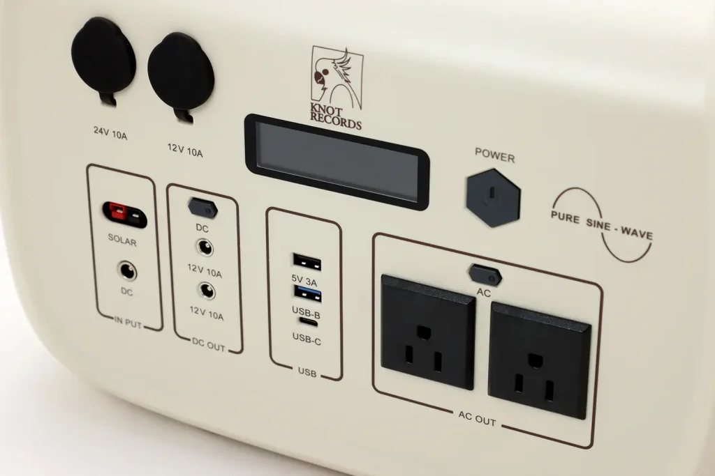 フレックスオリジナルレーベル「KNOT RECORDS(ノットレコード)」のローンチに先駆けて先行発売する、大容量・コンパクトなポータブルバッテリー。-10℃~60℃の温度で1500WのAC電力を継続的に出力でき、キャンプやアウトドアでの使用、停電時の緊急バックアップ電源としても使用可能です。また、ACプラグは家庭用と同じ「純正弦波」でランプ、ノートパソコン、調理器具、小型冷蔵庫など家庭で使うほとんどの電化製品に使用することが出来ます。