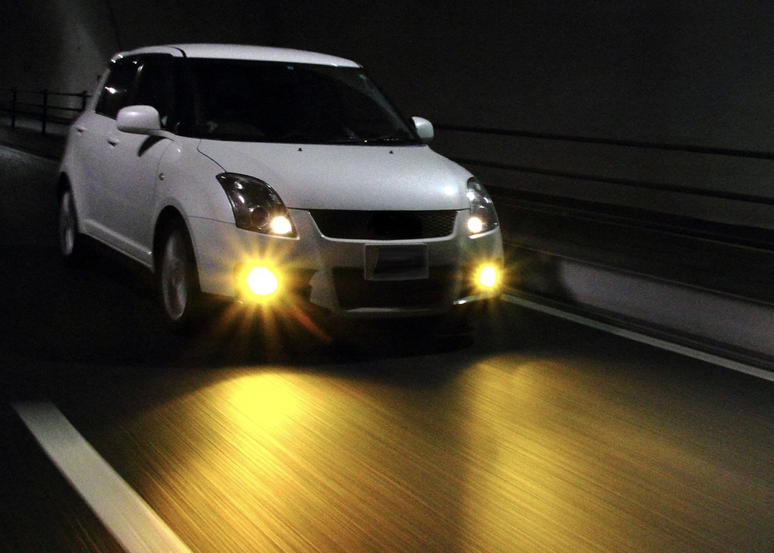 霧の中では通常のヘッドライトの光が拡散してしまい、かえって見にくくなることがある。フォグランプを点灯することで、地面に近い部分をしっかり照らし、進行方向を確認しやすくする。