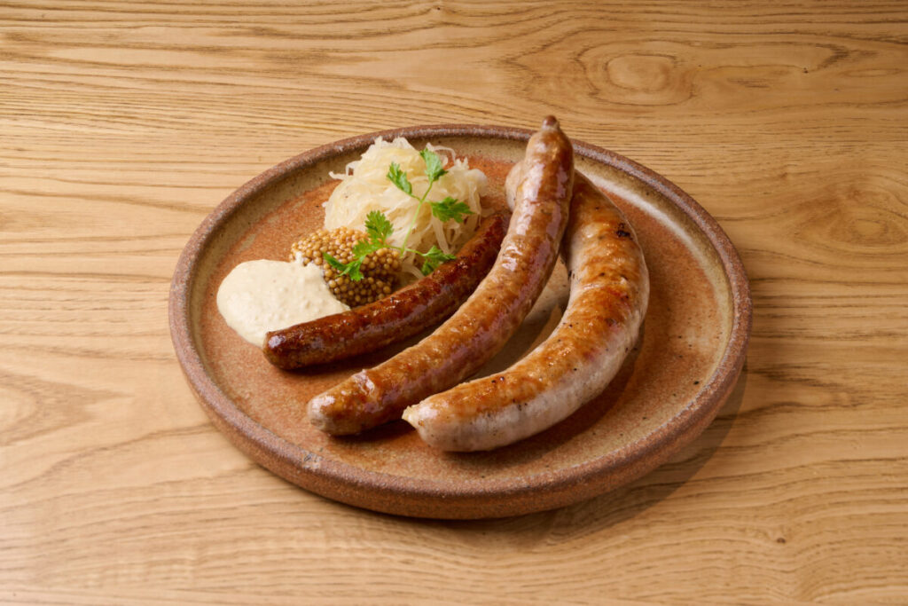 また、フードは西洋わさびをディップして召し上がるソーセージの盛り合わせや味噌バタープレッツェル、塩麹を使ったシュラハトプラットなど、伝統的なドイツ料理に日本のエッセンスを取り入れたメニューを提供する。ビールの本場でもあるドイツと日本の食文化が融合した本格的な創作料理である。