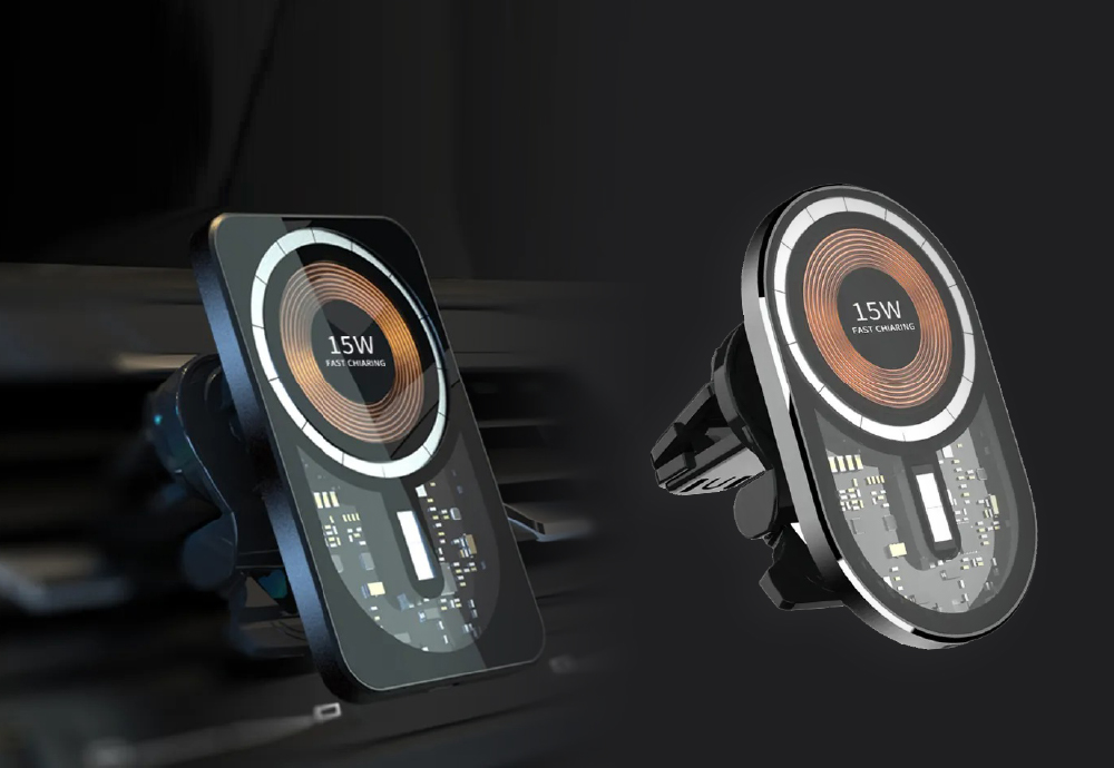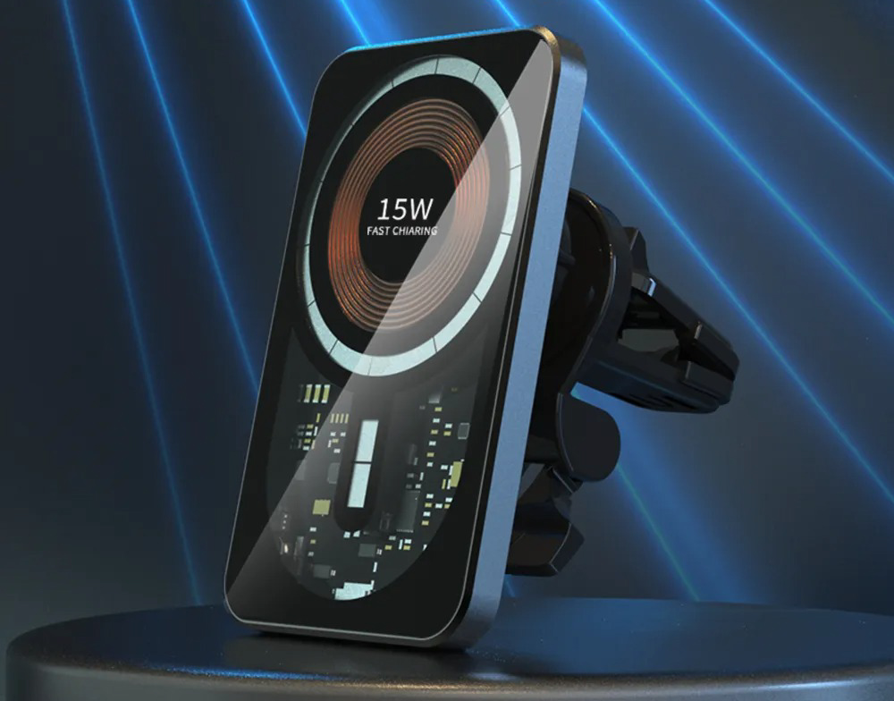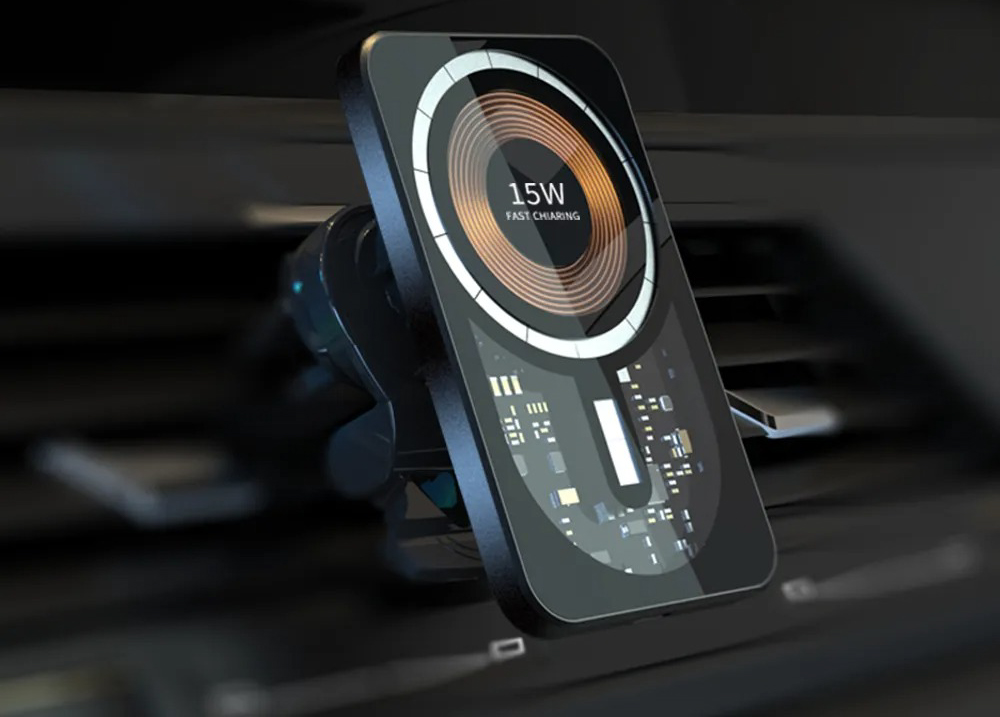 透明スケルトン近未来デザインでマグネット装着 車でも便利にiPhoneを充電