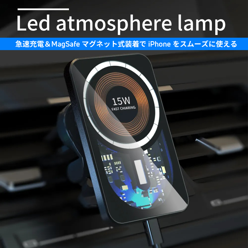 ●iPhone 12以降のMagSafe対応マグネット式充電ができるカーチャージャー
