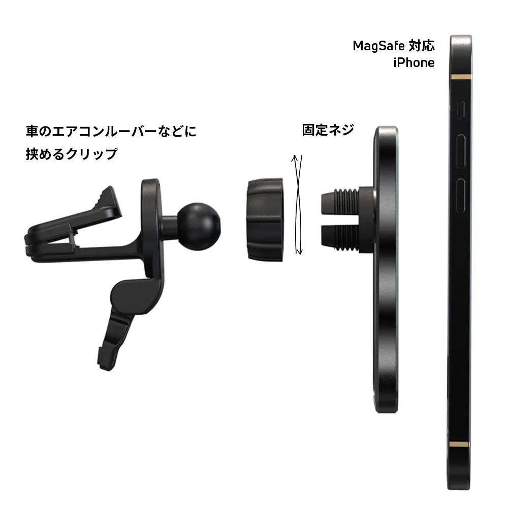 ※ マグネットによるスマートフォンへの固定はMagSafe機種を対象としており、MagSafe対象機種以外のAndroid等では落下する危険があるためご注意ください。