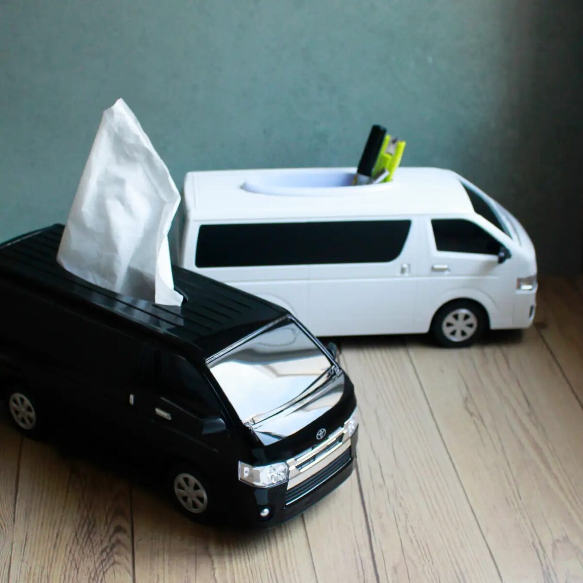 ・人気のハイエース型ティッシュケースはトヨタ自動車オフィシャルライセンス品