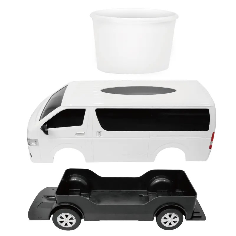 タイヤが回るギミックつきで、細部のディティールも再現しており本格的なハイエースグッズに仕上がっており、インテリアとしてもインパクトのある遊び心溢れるアイテムです。