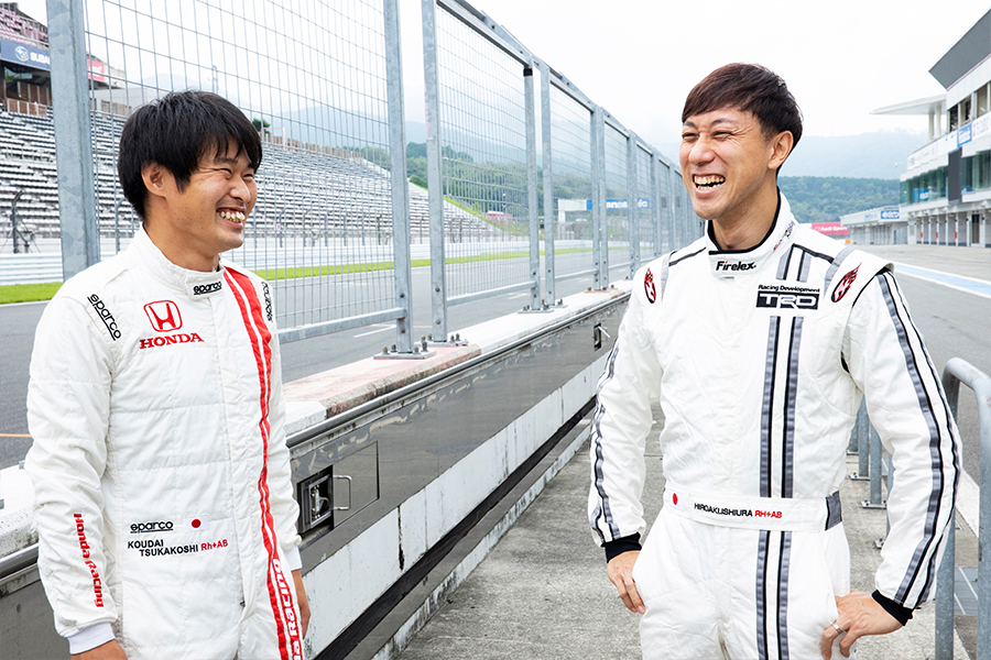 塚越選手:そもそもTOYOTAのメンバーと膝を突き合わせて話すことなんてなかったので、ものすごく新鮮。勝負するのは、レースを続けていくための開発を経た後、最後の最後でいいんです。HondaとTOYOTAは、大きなところでモータースポーツの仲間です。