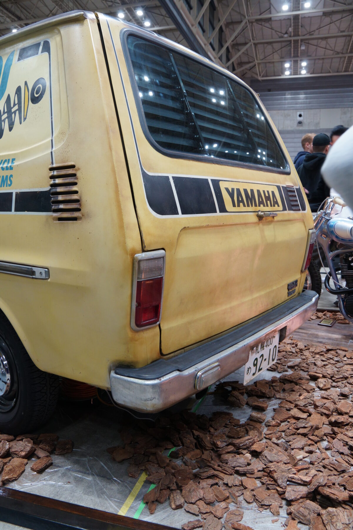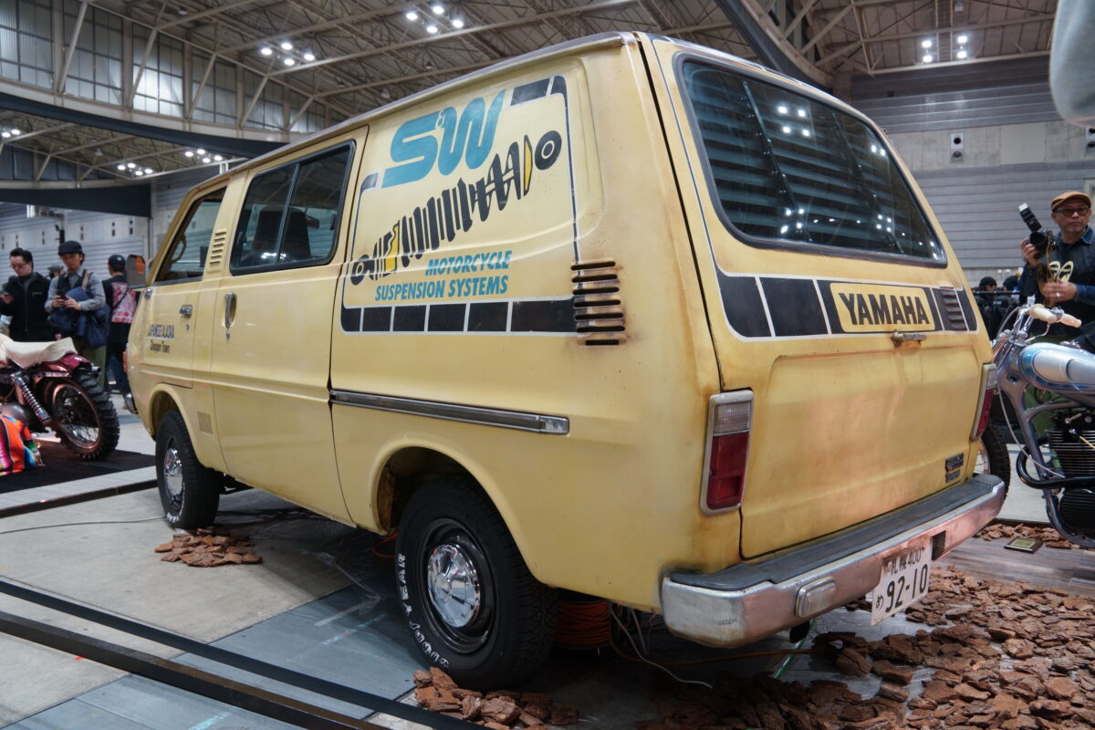 トヨタ タウンエース(KR10)をペイントして独自の世界観を演出していた。1976年製のタウンエースには、ヤマハのストロボラインとハンドペイントが施され、ペイントのかすれ具合が郷愁を誘う。