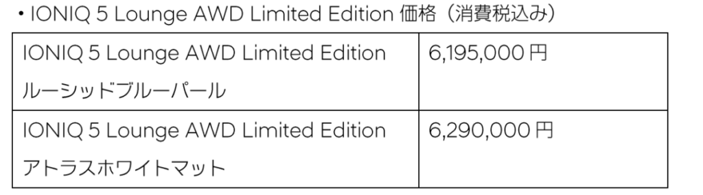 限定車IONIQ 5 Lounge AWD Limited Editionを販売開始