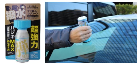 スプレータイプの窓ガラス撥水剤で、乾燥させる必要がなく、スプレーしてすぐにクロスで拭き上げるだけで、簡単かつスピーディーに撥水コーティングが完了します。濡れたガラスにも使用可能なため、雨天時でも施工可能です。