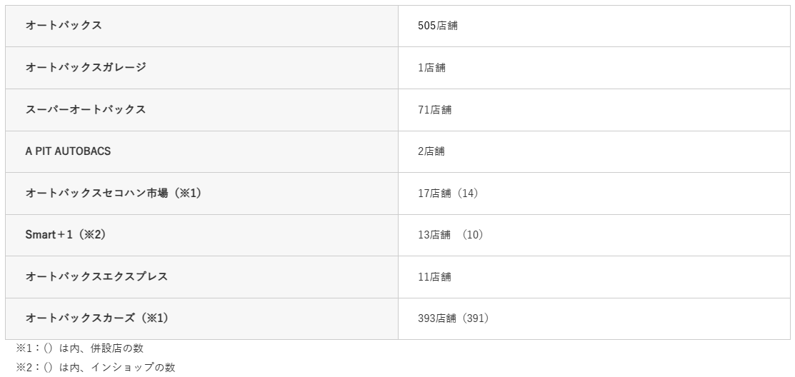 ご参考:オートバックスグループ国内店舗数 計1,013店舗 (2024年10月11日時点)