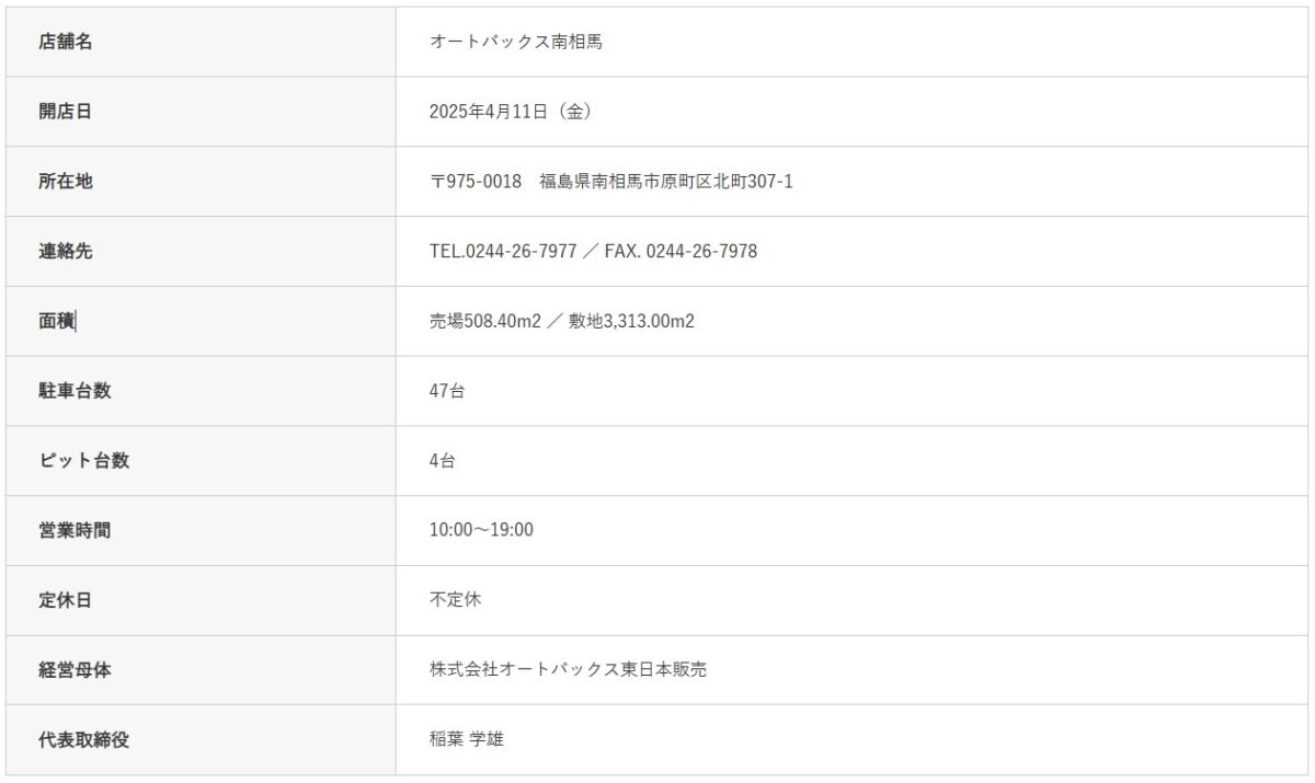株式会社オートバックスセブンは、2025年4月11日(金)に福島県南相馬市に新店舗「オートバックス南相馬」をオープンする。
