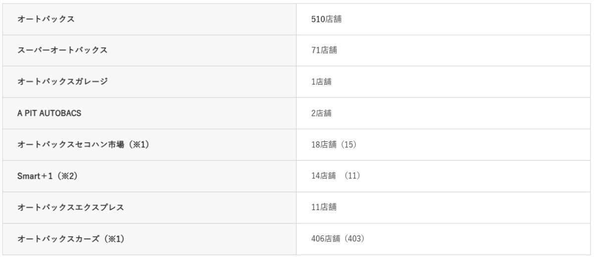 ご参考:オートバックスグループ国内店舗数 計1,033店舗