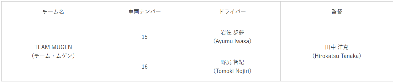 ■ SUPER FORMULAに参戦するTEAM MUGENのサポートを拡大