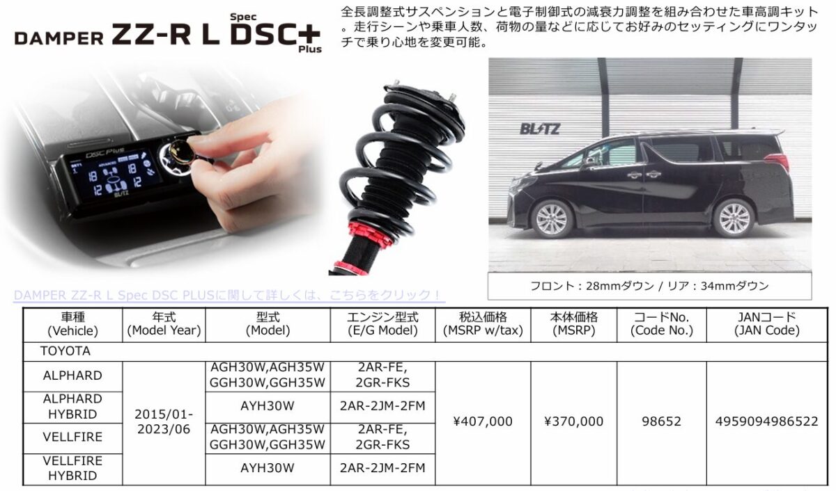 「DAMPER ZZ-R L SpecDSC Plus」TOYOTA ALPHARD/VELLFIRE 他(AGH3#W/AYH30W 他) ⽤ 販売開始のご案内