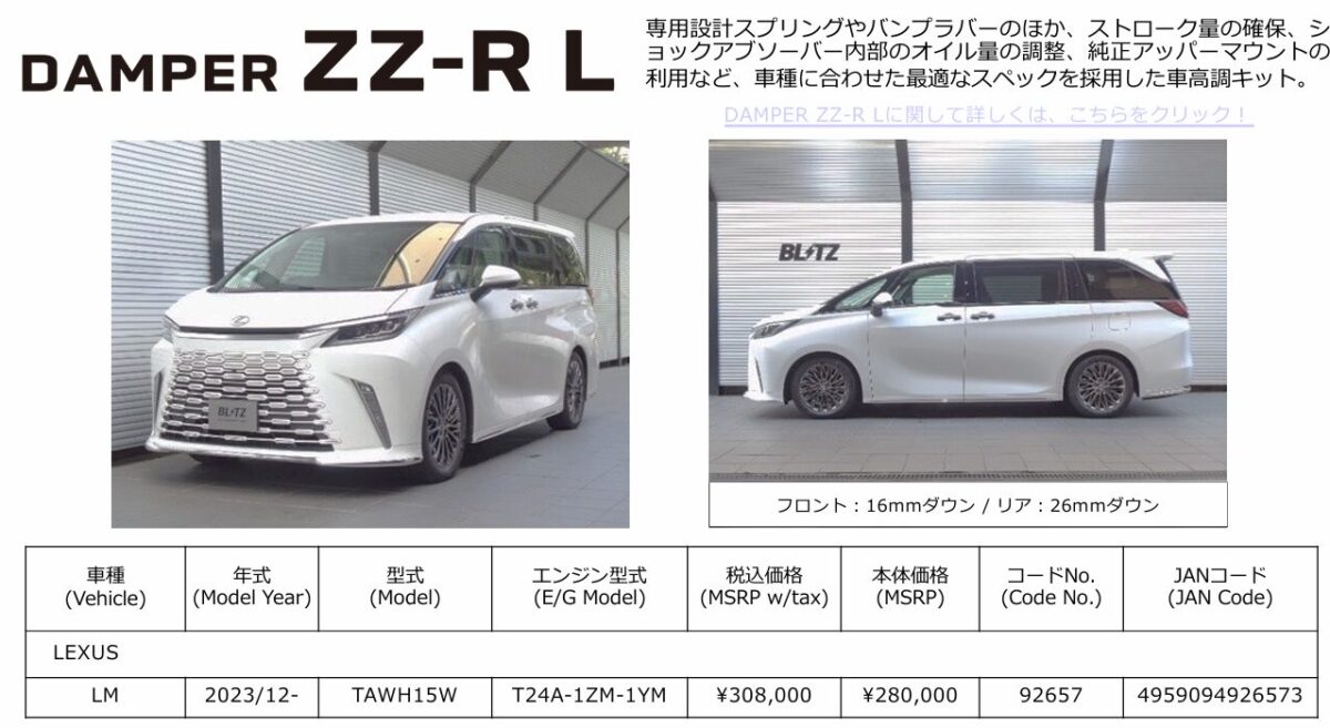 「DAMPER ZZ-R L」LEXUS LM (TAWH15W) ⽤販売開始のご案内