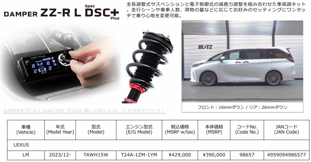 「DAMPER ZZ-R L SpecDSC Plus」TOYOTA LEXUS LM (TAWH15W) ⽤ 販売開始のご案内