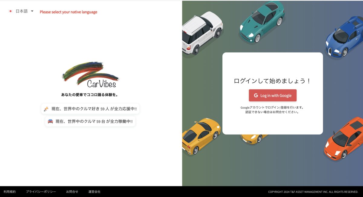 私が表現したかった、創りたかったプロダクトがまさにCarVibesそのものです。追加の機能開発も順次やっていきます。私自身大好きなクルマ・モビリティの楽しさを表現出来る、世界中のクルマ好きと色んな事で合流・共有し合える場を世界中に展開して、世界中でもっとクルマ・モビリティ領域を盛り上げてまいります。
