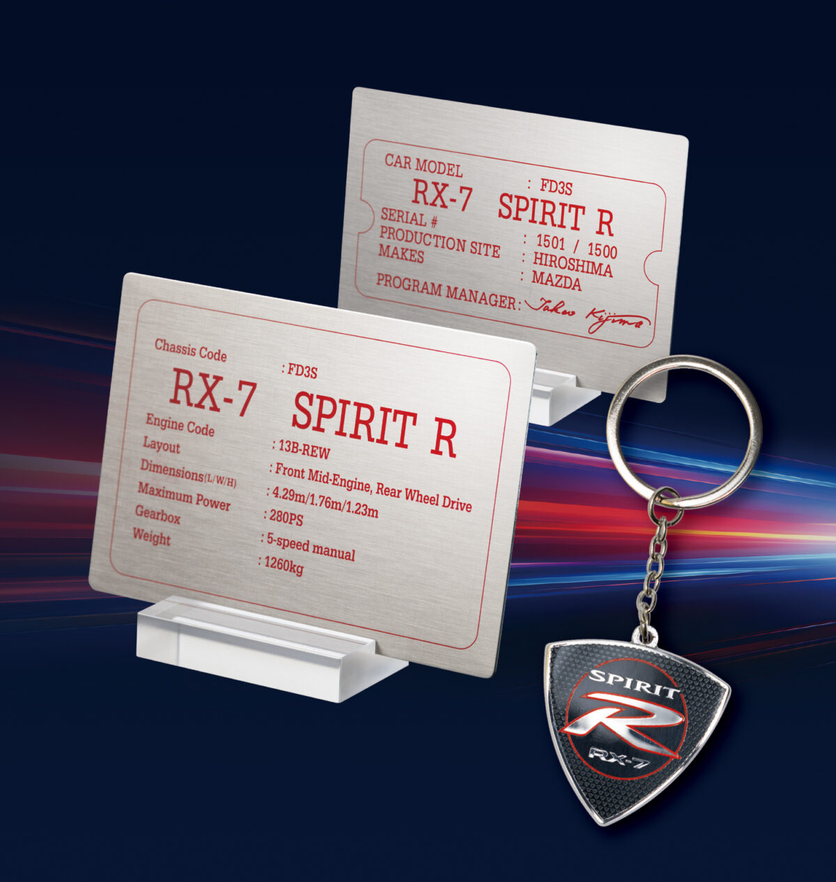 創刊号~第18号までのご購読で、スピリットR専用オーナメントのオリジナルキーホルダーと、コーションプレート/スペックプレートをモチーフとした両面使用のメタルプレートの2点をプレゼントします。