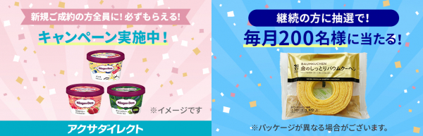 キャンペーン期間中に、ドコモスマート保険ナビ経由で「アクサダイレクトの自動車保険」を新規にご成約いただいたお客さまを対象に「ハーゲンダッツミニカップ3種類から1つ×3個」をもれなくプレンゼントします。
