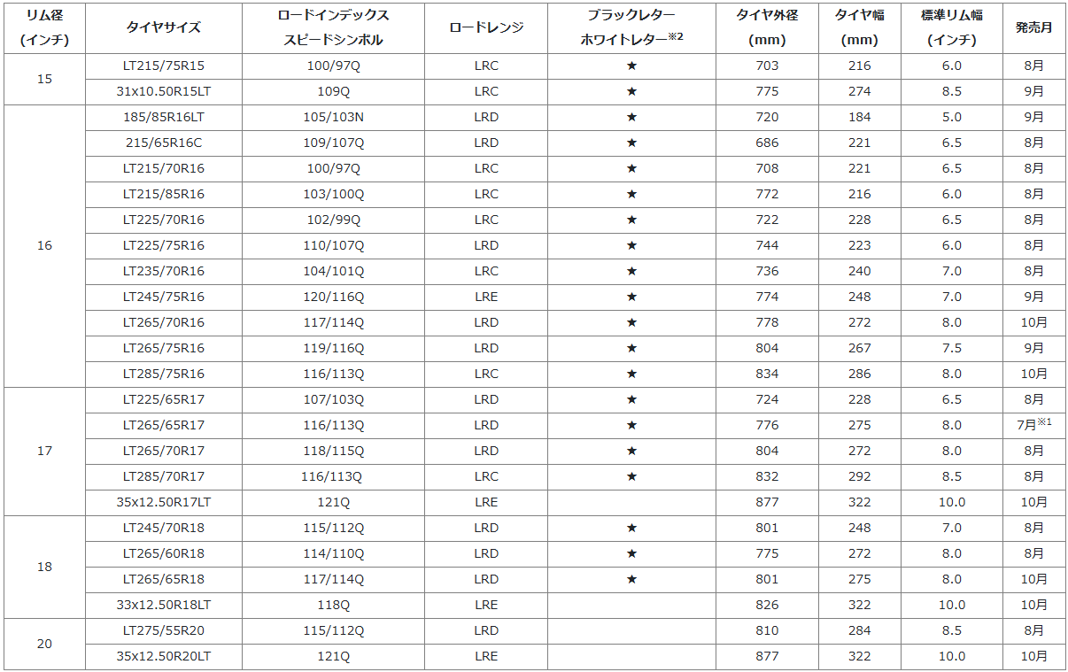 ※1 LT265/65R17のみ7月から先行発売