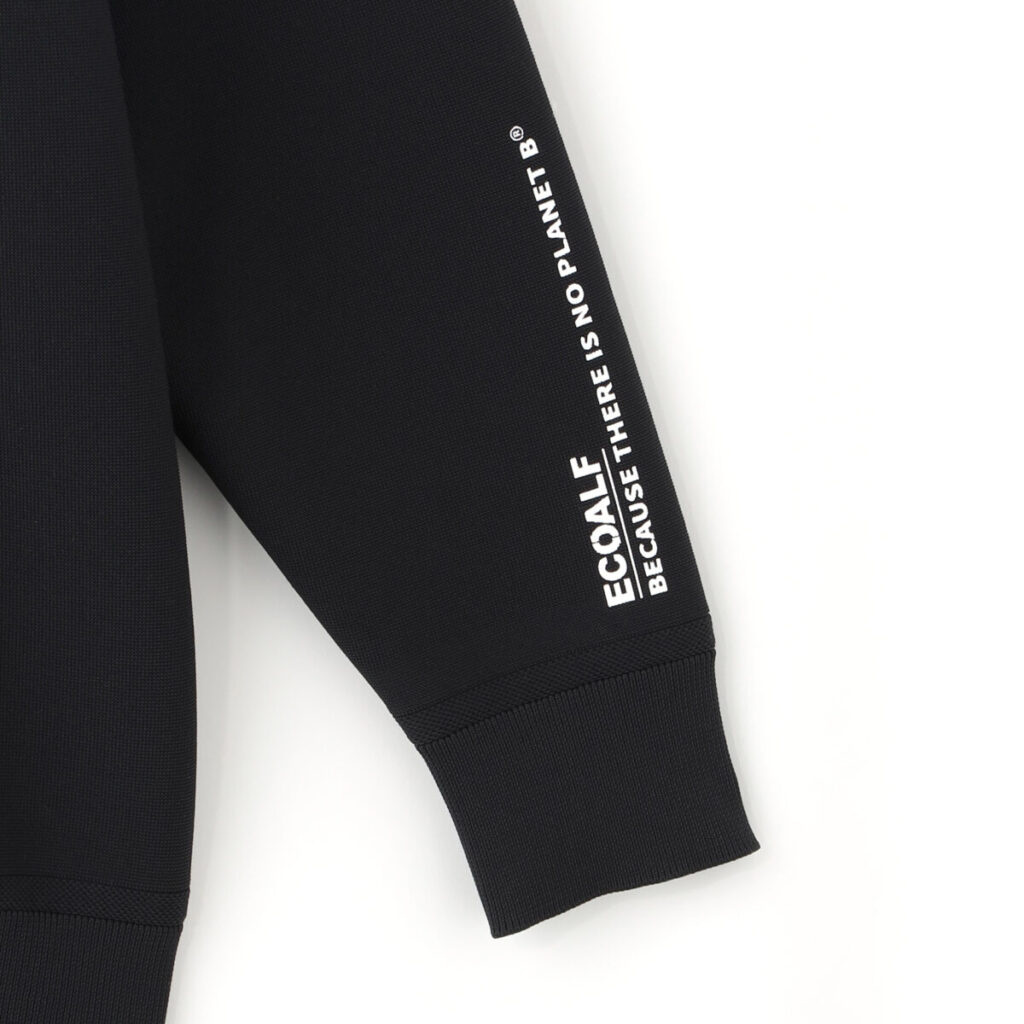 運転する際に映えるデザインであるために、袖の部分にデザインポイントをつけ、右袖口には白ライン、左腕部分には「ECOALF」のブランドメッセージ『BECAUSE THERE IS NO PLANET B®』(第2の地球はないのだから)のプリントを施しています。トレンド感と快適さのあるゆったりとしたシルエットとし、運転時にもたつきが気にならないよう袖口と裾部分はリブの編地によりフィット感も持たせています。