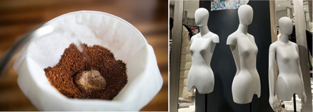 ・お客さまに提供したコーヒーや社員ご自宅のコーヒーかすを回収し、「ECOALF」新店舗でのトルソーの原料に使用