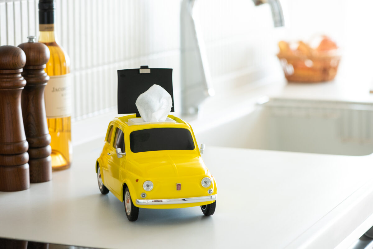 まるでミニカーのような見た目の、「Fiat Nuova 500」 2WAY ティッシュケースが、FIAT CAFFE SHOTO に登場。