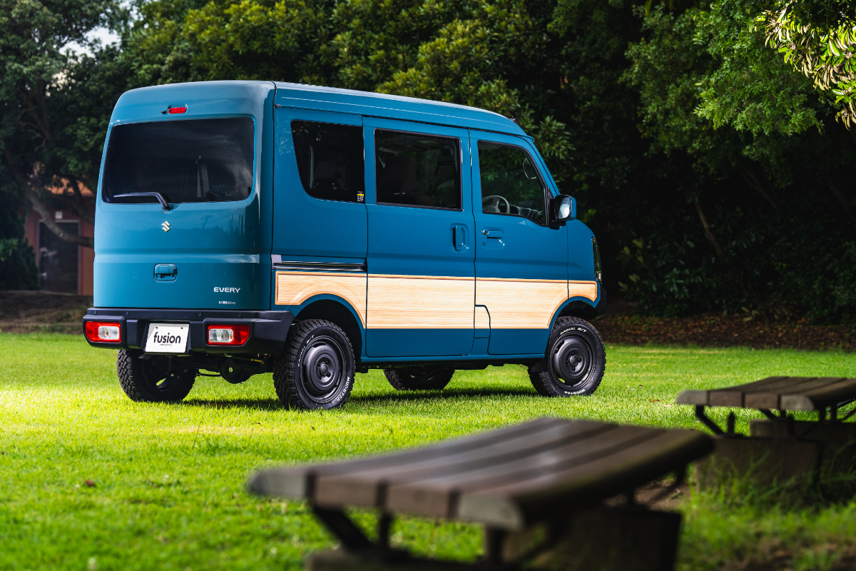 fusionは、ジムニー、エブリイをはじめとする車両のカスタムパーツを展開し、レトロな魅力と現代的な機能を融合させたアイテムを提供するブランドです。今回の新作パーツは、エブリイとジムニーの融合を目指したアイテムです。